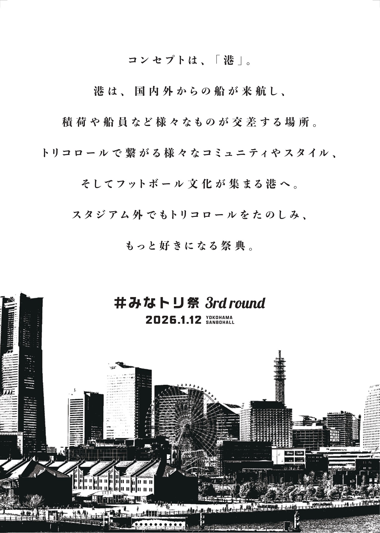 2026年1月12日(月・祝)に横浜産貿ホールで開催予定の「第3回 #みなトリ祭」に関して、概要が決まりましたのでお知らせいたします。